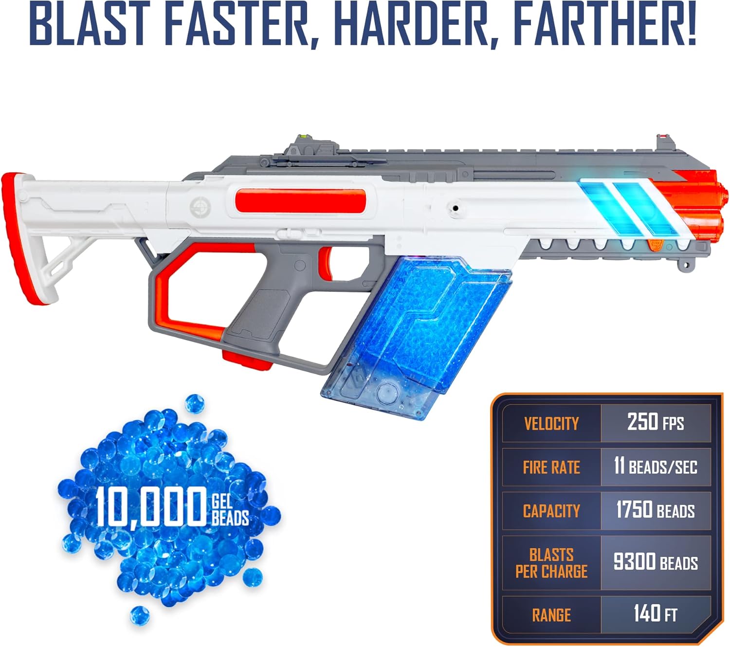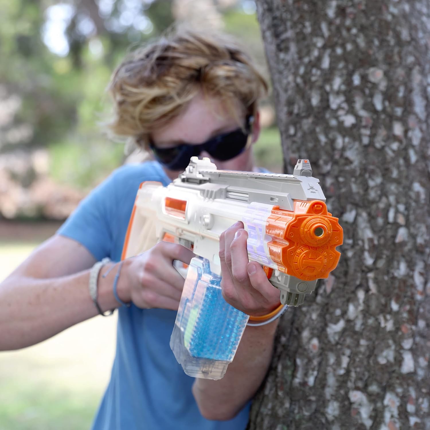 - MOTORIZED XL CAPACITY AMMO CLIP: The Havoc blaster is equipped with a motorized bottom feed ammo clip that delivers an unrelenting barrage of gel beads, ensuring you have the upper hand in battles with its extended capacity.